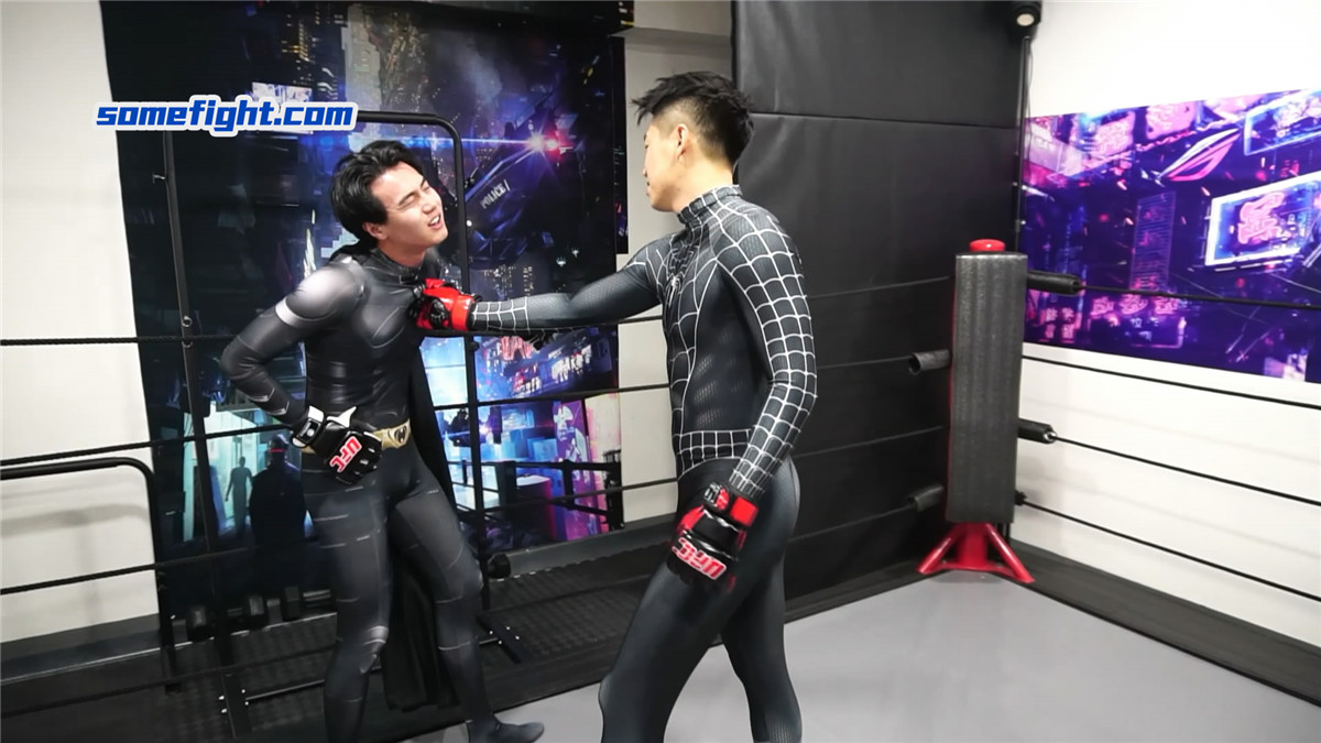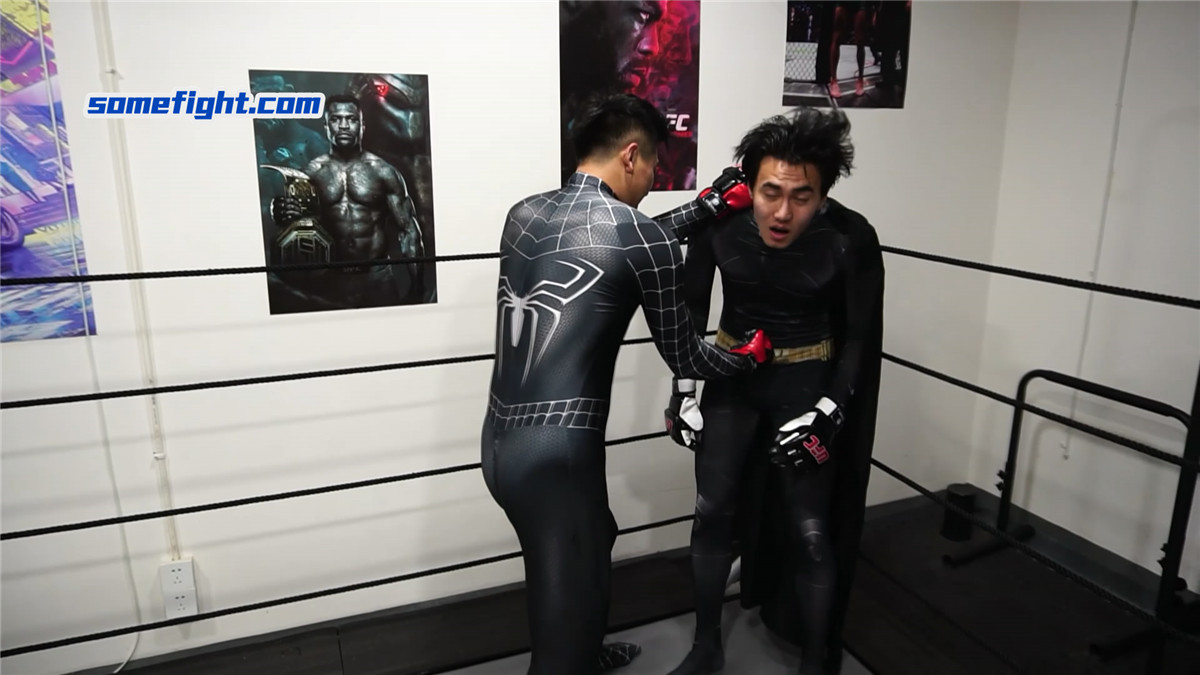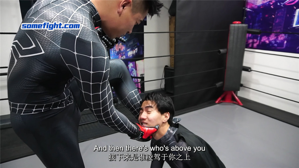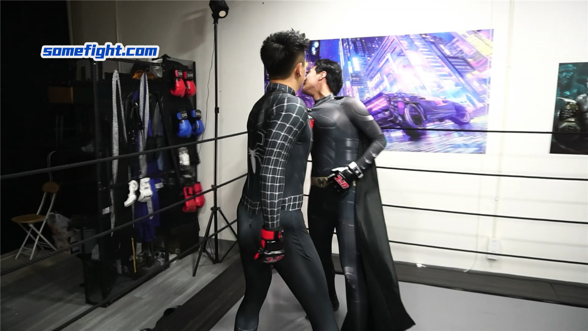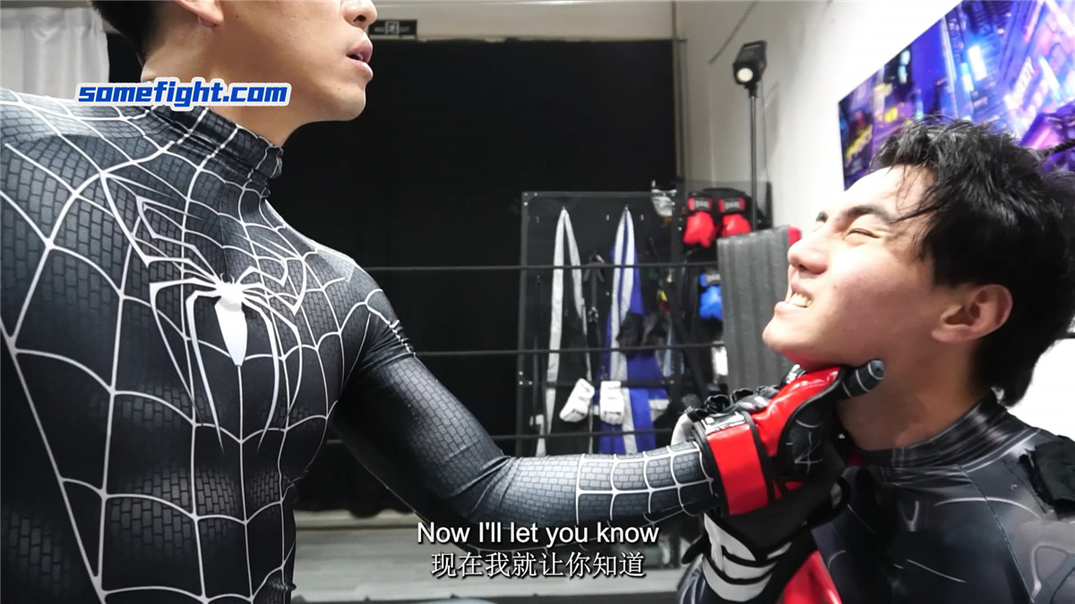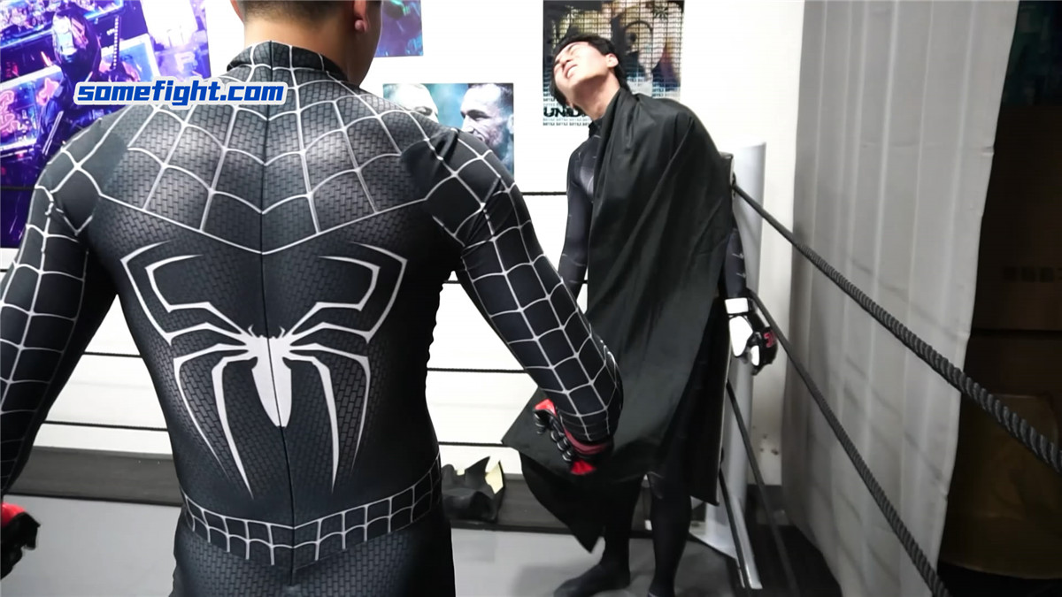 暗黑蜘蛛侠(何禹)在阴影中窥见,在未来,蝙蝠侠(阿肯)注定成为他黑暗之路上最棘手的阻碍。