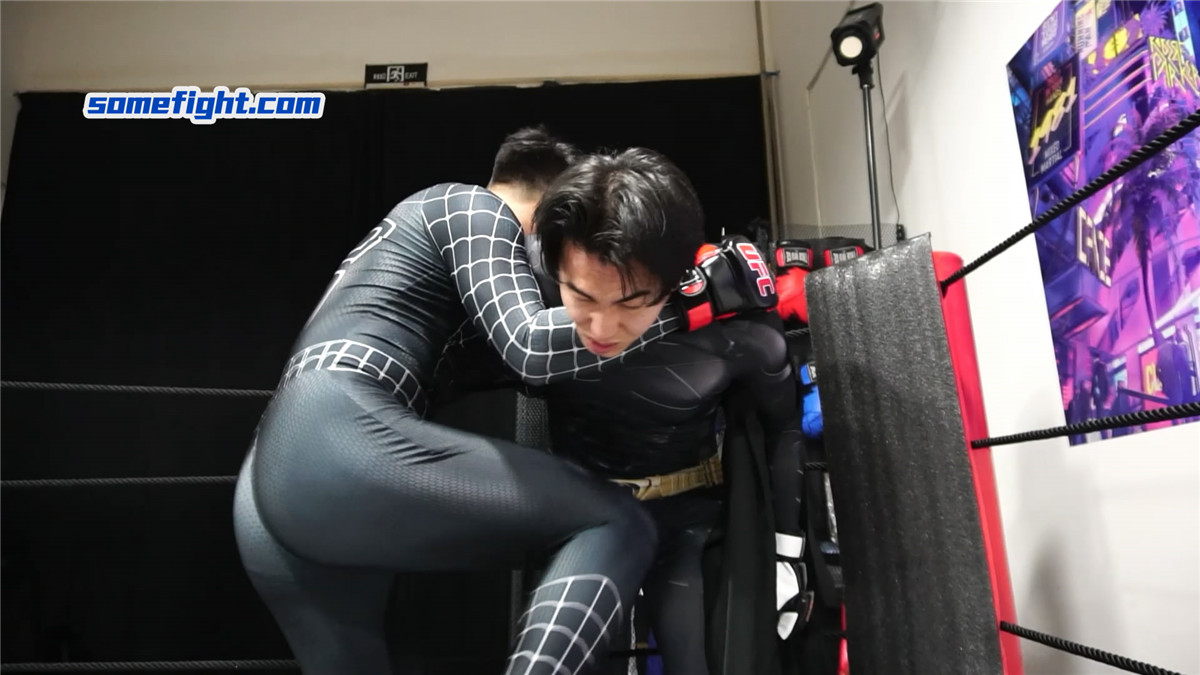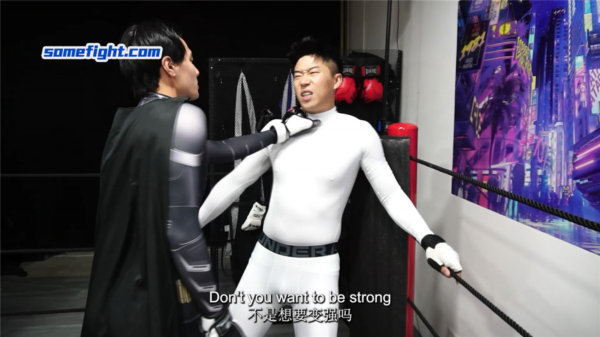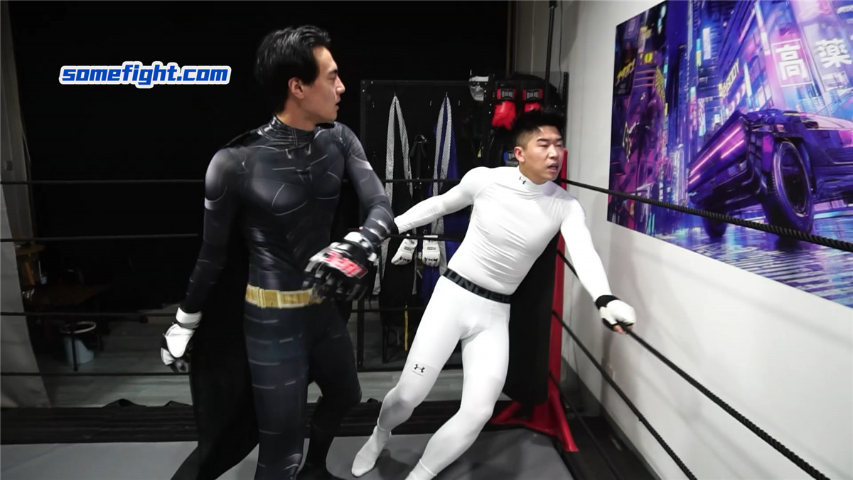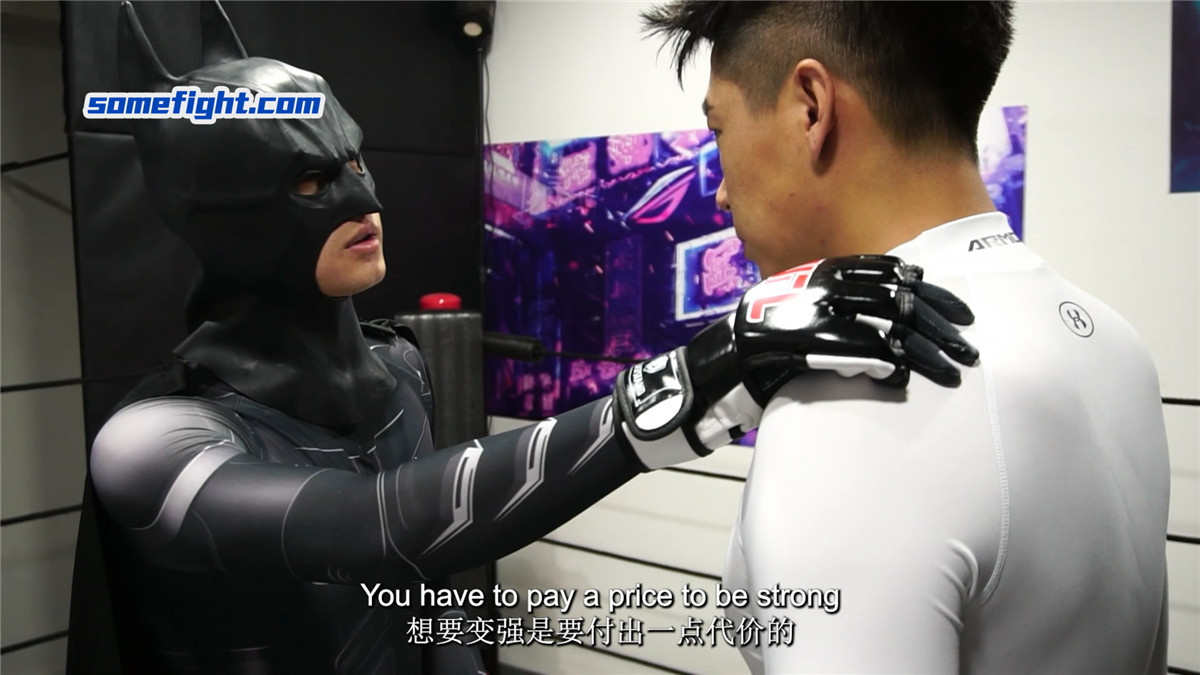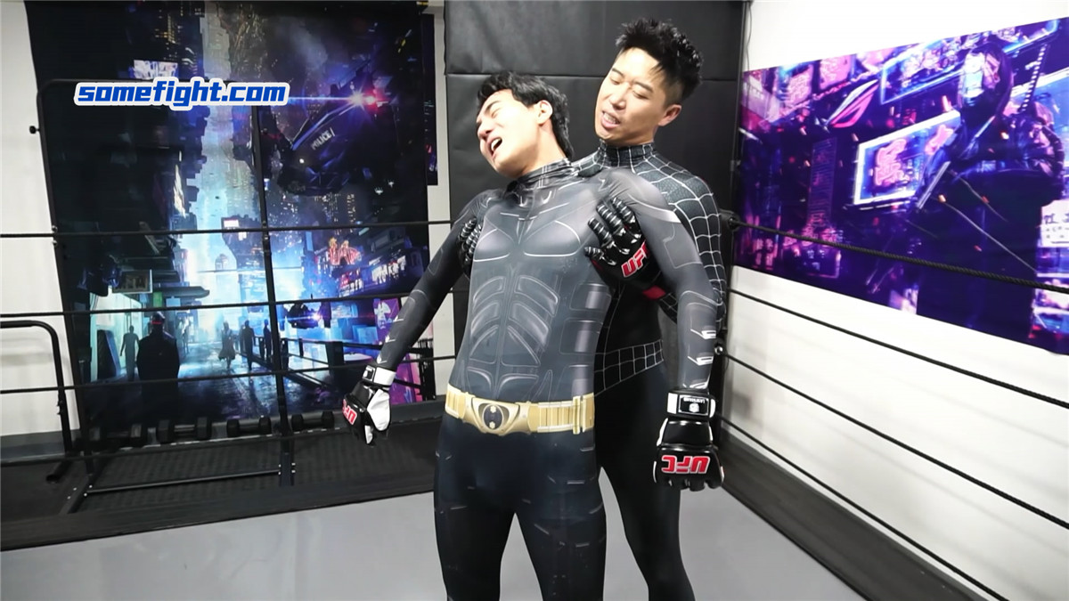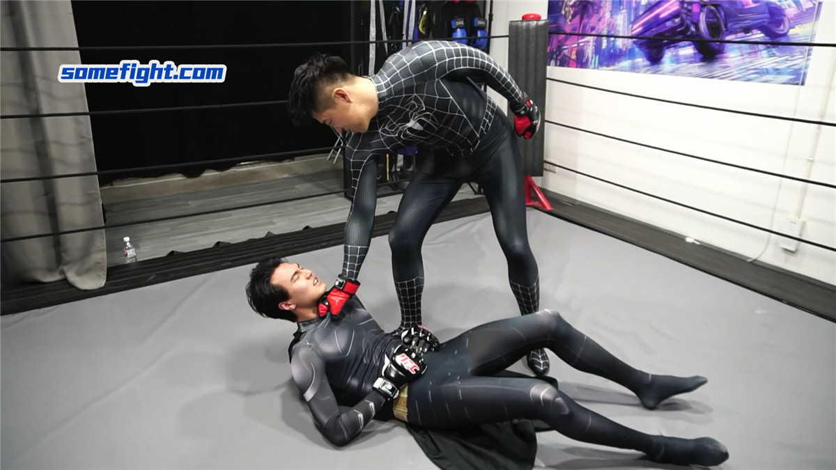 暗黑蜘蛛侠(何禹)在阴影中窥见,在未来,蝙蝠侠(阿肯)注定成为他黑暗之路上最棘手的阻碍。
